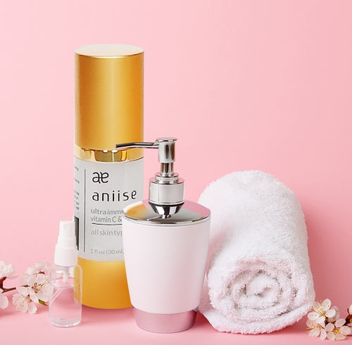 The Aniise Ultra Immune Serum is basically a super multivitamin and anti-aging complex for your skin. Vitamin C is a potent anti-oxidant which helps boost the skin’s immune system against the outside elements. Rosehip seed extract helps calm, brighten and moisturize the skin. The combination of the two, along with Collagen, COQ-10 and natural oils, such as chamomile, argan and rosemary extracts make this serum the ideal natural food . When used regularly, skin will be hydrated, fine lines and wrinkles will be less visible. It is the ideal serum for achieving a glowing, brighter, and younger complexion.